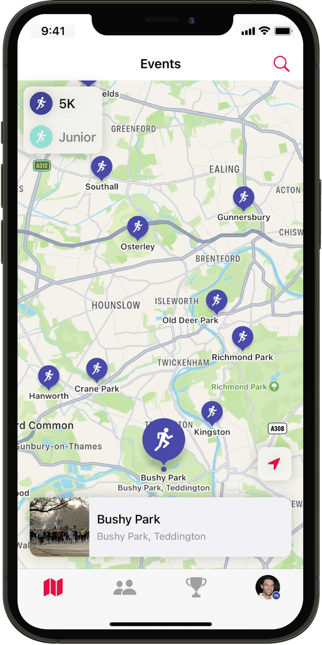 Check the map to find 5K and junior (2K) events near you or another location. Search to find your Nearest Event Not Done Yet (NENDY).