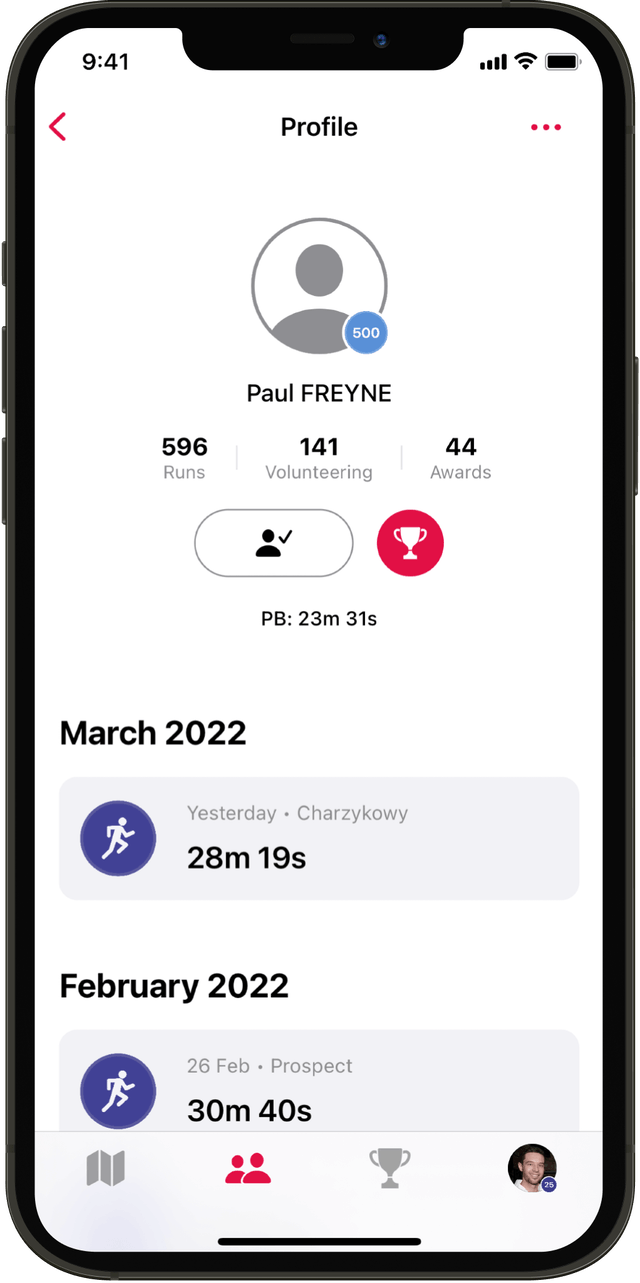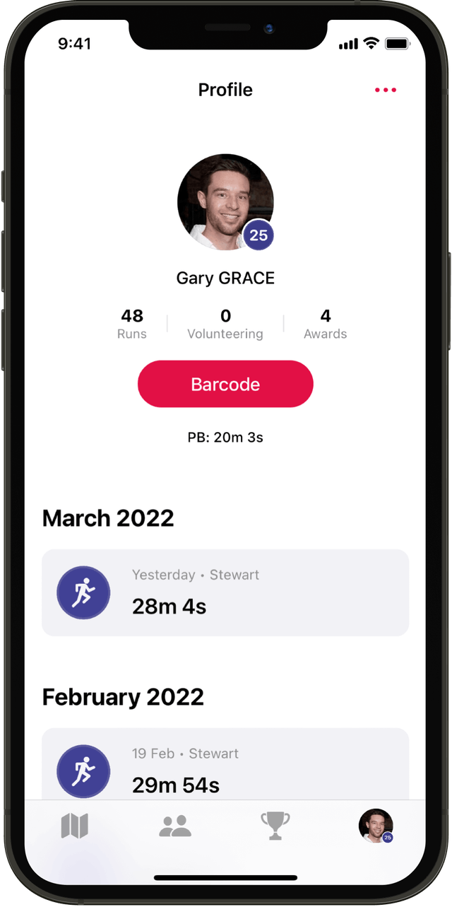 View all of your runs, volunteering and awards in one place. Check your Personal Best (PB) and see how far away you are from your next milestone.